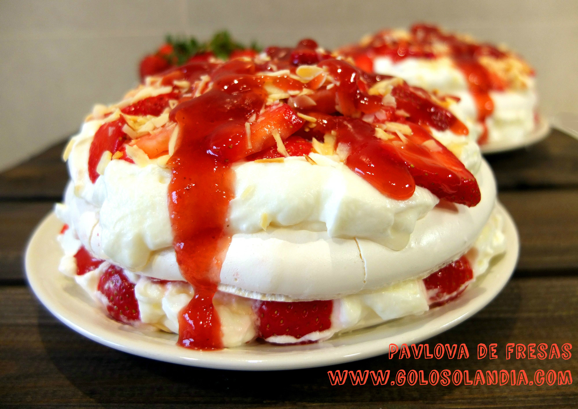 - Por ultimo calentamos un poco de mermelada, y rociamos nuestra tarta con mermelada al gusto para acabar nuestra deliciosa pavlova de fresas.