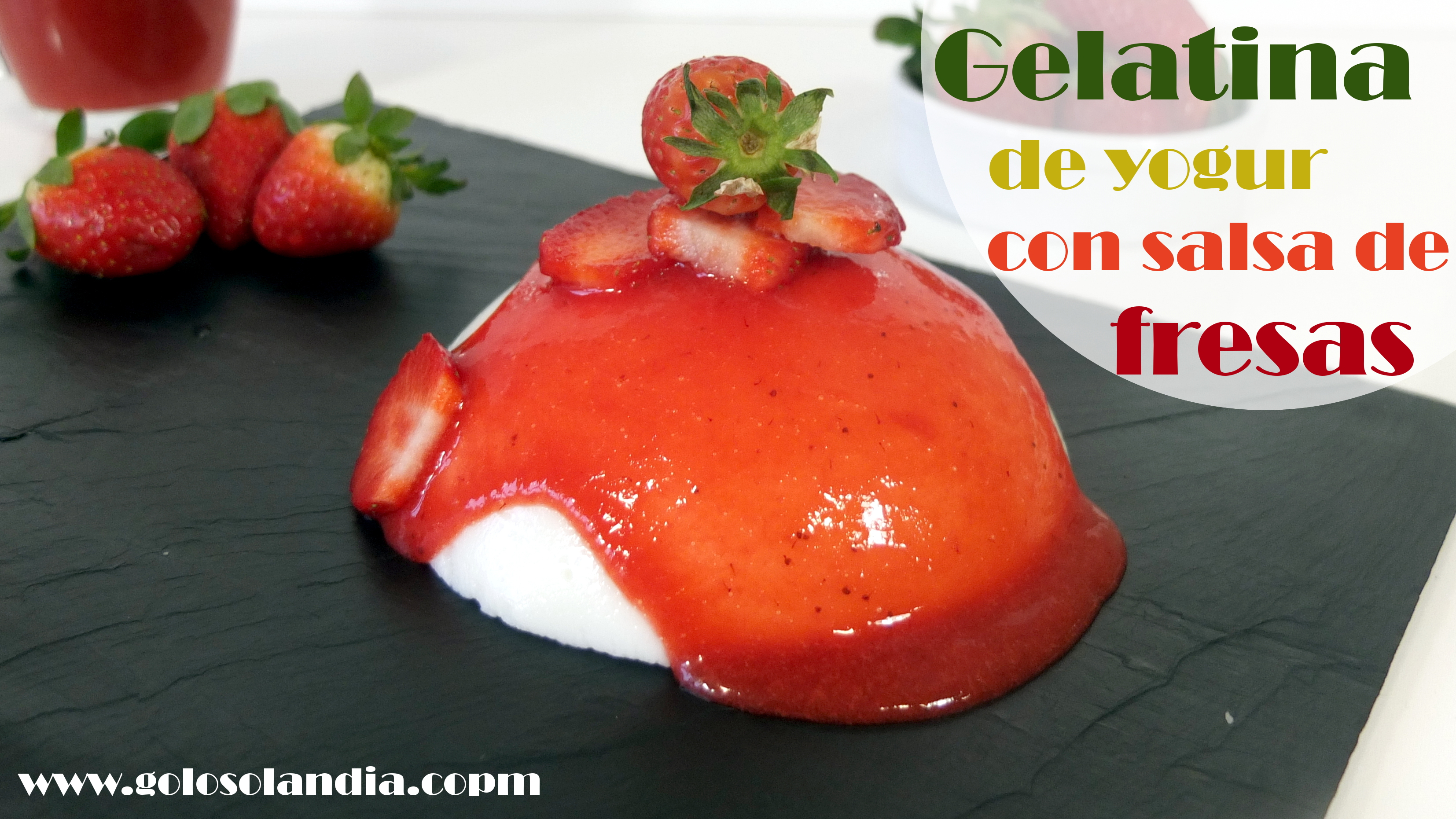 Un postre light: Gelatina de yogur con salsa de fresas