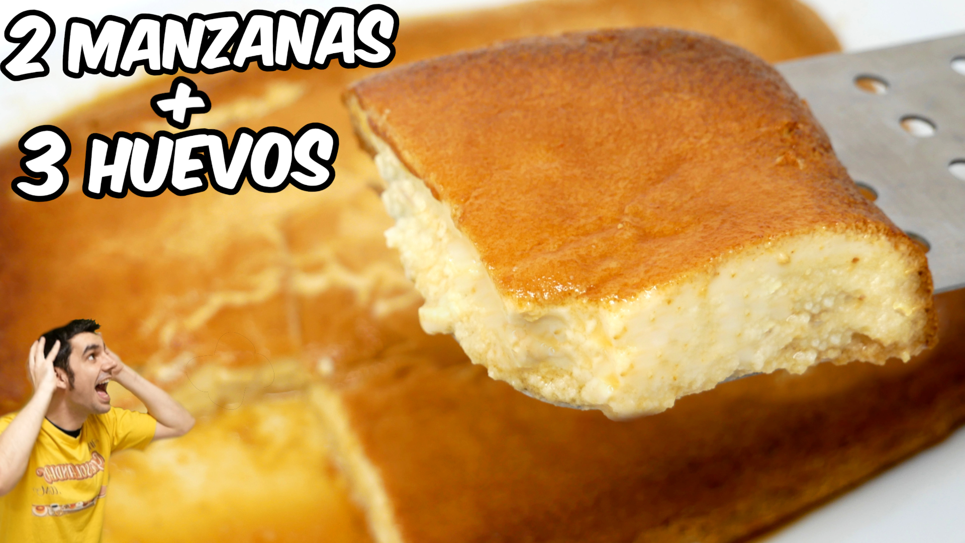 No te pierdas este maravilloso postre posiblemente el mejor postre del mundo con 2 manzanas y 3 huevos. Un pastel cremoso sencillo delicioso y suave que a todo el mundo le encanta, La textura esta a medio camino entre un flan y un pudin o budin y el sabor habla por si solo.